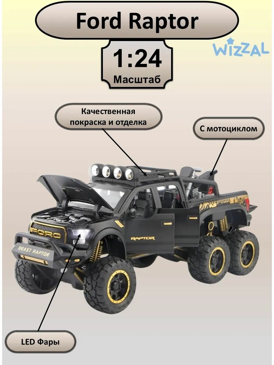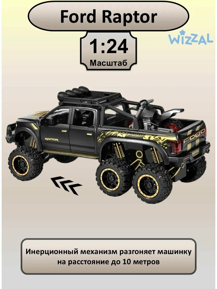 Машинка металлическая инерционная, игрушка детская для мальчика коллекционная масштабная модель 1:24 Ford Raptor 6х6 пикап с мотоциклом; Форд Раптор черный: сравнение цен, характеристики, фото, актуальное наличие и цены.