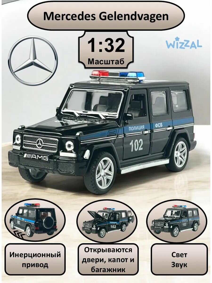 Машинка металлическая инерционная, игрушка детская для мальчика коллекционная масштабная модель 1:32 Mercedes-Benz Gelendvagen ; Мерседес Гелик полиция ФСБ черный: сравнение цен, характеристики, фото, актуальное наличие и цены.