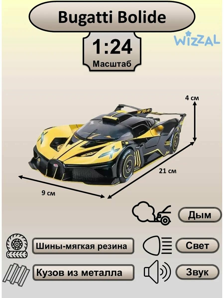 Купить Машинка металлическая инерционная, игрушка детская для мальчика коллекционная модель 1:24 Bugatti Bolide ; Бугатти желтый С дымом с доставкой по всей России. Машинка металлическая инерционная, игрушка детская для мальчика коллекционная модель 1:24 Bugatti Bolide ; Бугатти желтый С дымом: сравнение цен, характеристики, фото, актуальное наличие и цены.