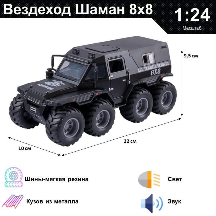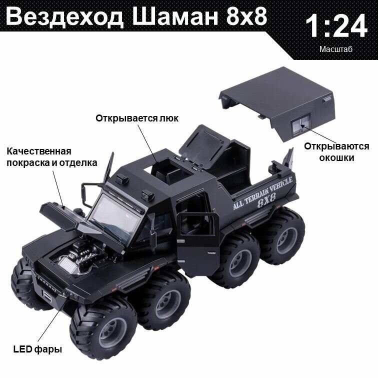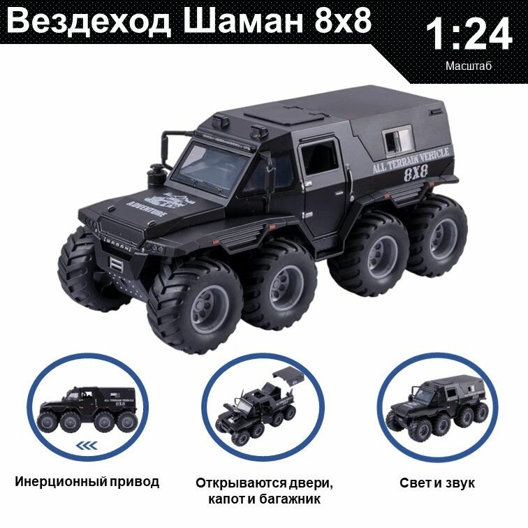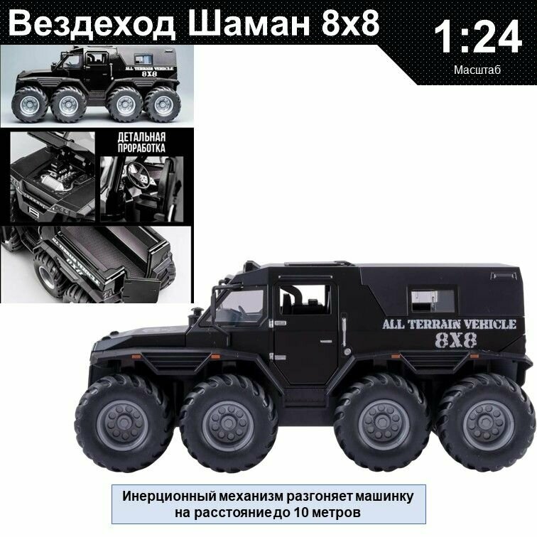 Купить Машинка металлическая инерционная, игрушка детская для мальчика коллекционная модель 1:24 Джип Шаман 8х8 черный с доставкой по всей России.