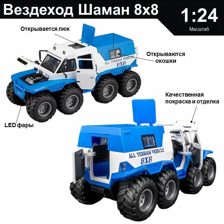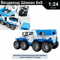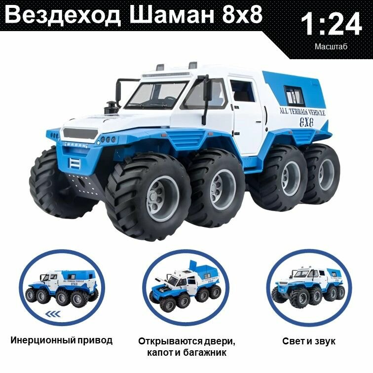 Купить Машинка металлическая инерционная, игрушка детская для мальчика коллекционная модель 1:24 Джип Шаман 8х8 синий с доставкой по всей России.