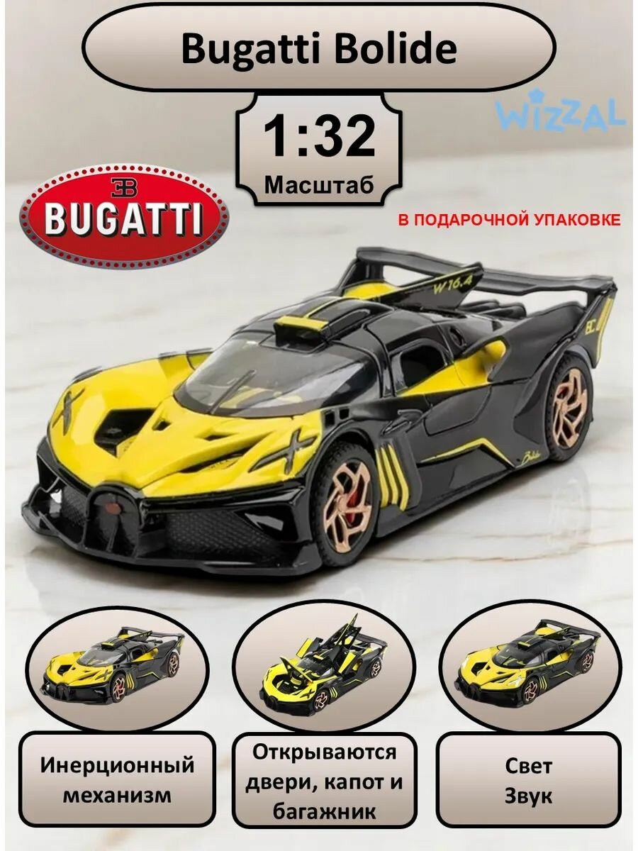Купить Машинка металлическая инерционная, игрушка детская для мальчика коллекционная модель 1:32 Bugatti Bolide ; Бугатти черный; желтый в подарочной коробке с доставкой по всей России. Машинка металлическая инерционная, игрушка детская для мальчика коллекционная модель 1:32 Bugatti Bolide ; Бугатти черный; желтый в подарочной коробке: сравнение цен, характеристики, фото, актуальное наличие и цены.