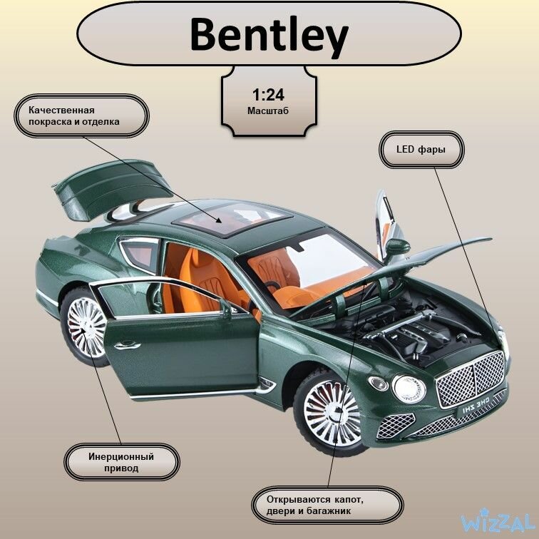 Машинка металлическая инерционная коллекционная масштабная модель 1:24 Bentley Continental ; Бентли Континенталь зеленый: сравнение цен, характеристики, фото, актуальное наличие и цены.