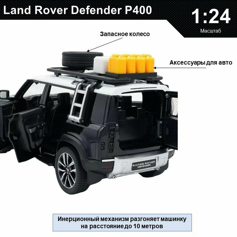 Купить Машинка металлическая инерционная коллекционная модель 1:24 Land Rover Defender ; Ленд Ровер черный с доставкой по всей России.