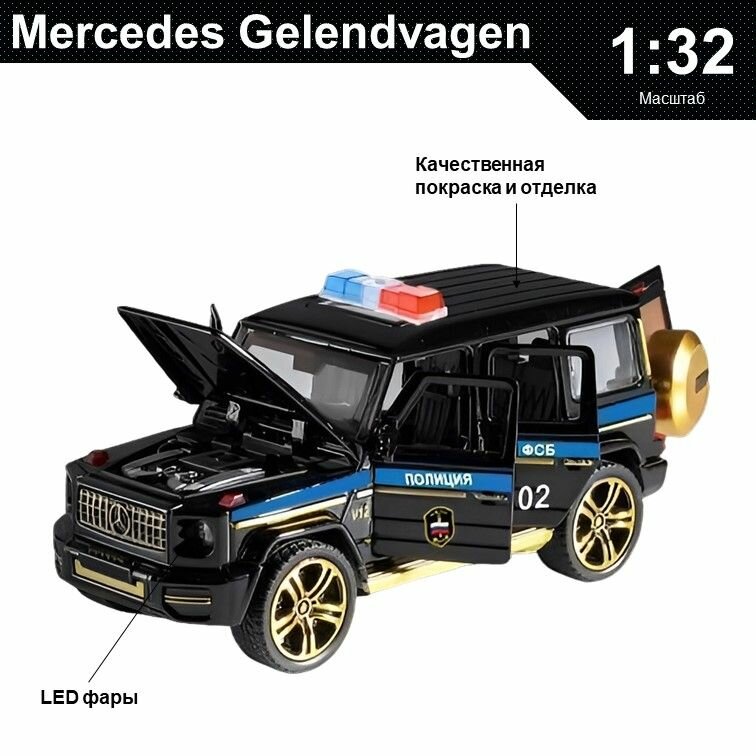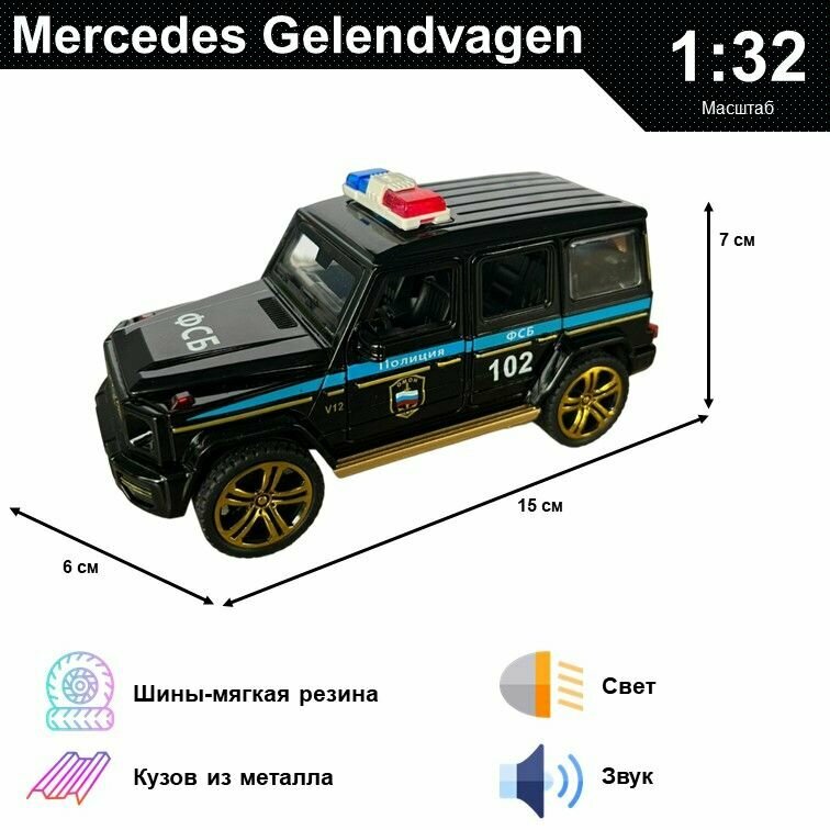 Купить Машинка металлическая инерционная коллекционная модель 1:32 Mercedes-Benz Gelendvagen ; Мерседес Гелик полиция черный с доставкой по всей России. Машинка металлическая инерционная коллекционная модель 1:32 Mercedes-Benz Gelendvagen ; Мерседес Гелик полиция черный: сравнение цен, характеристики, фото, актуальное наличие и цены.