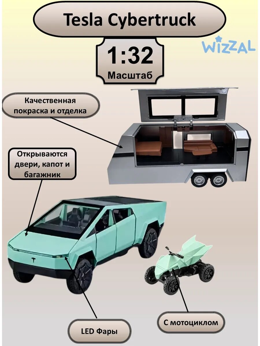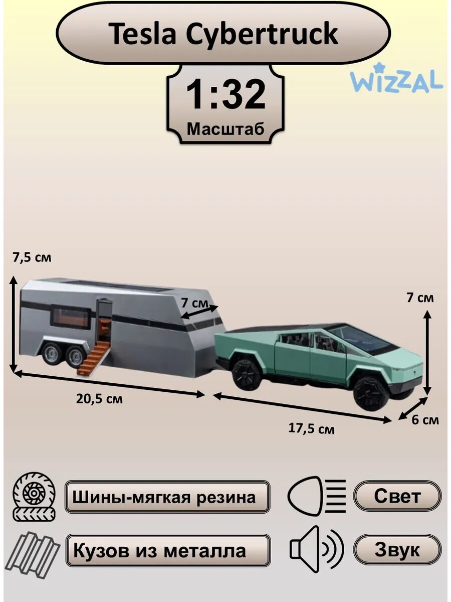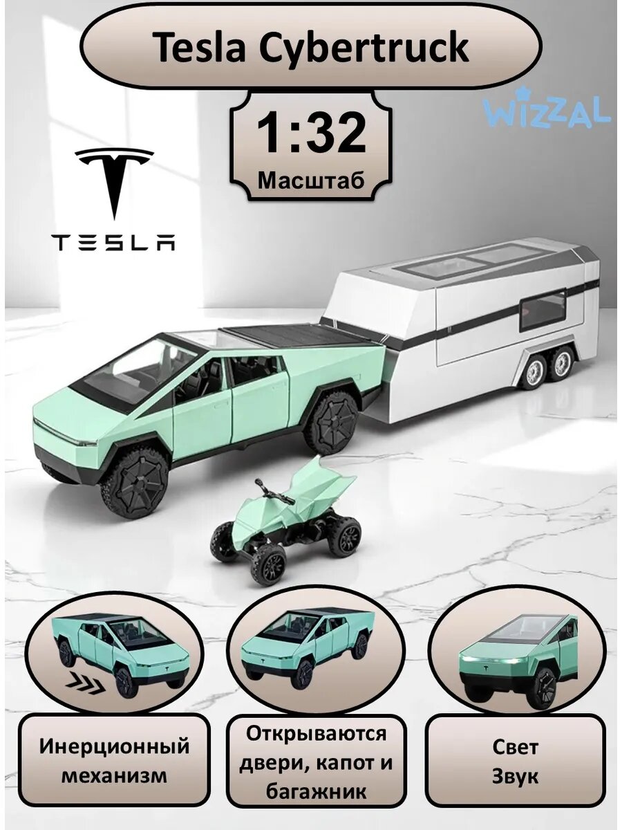 Машинка металлическая Tesla Cybertruck с прицепом 1:32: сравнение цен, характеристики, фото, актуальное наличие и цены.