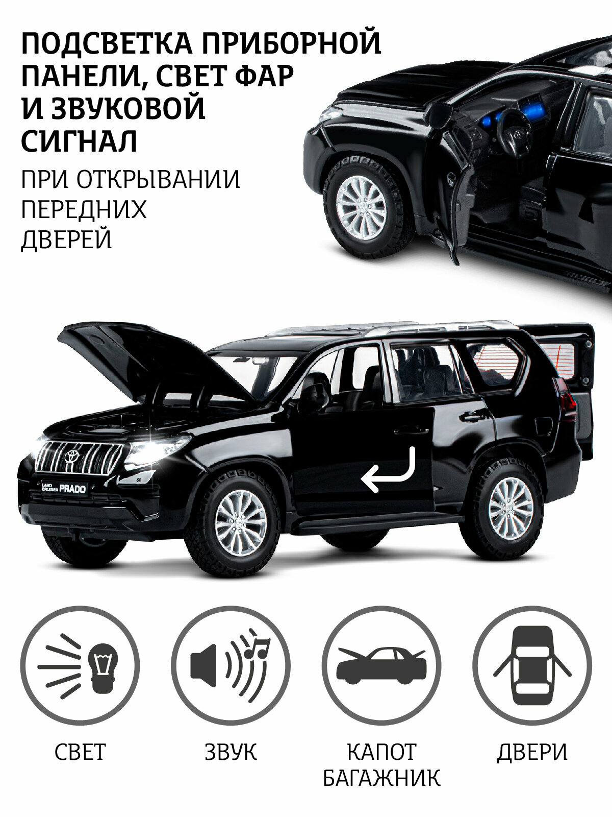 Машинка металлическая ТМ Автопанорама, Land Cruiser Prado, М1:24, свободный ход колес, свет, звук, черный, JB1251507: сравнение цен, характеристики, фото, актуальное наличие и цены.