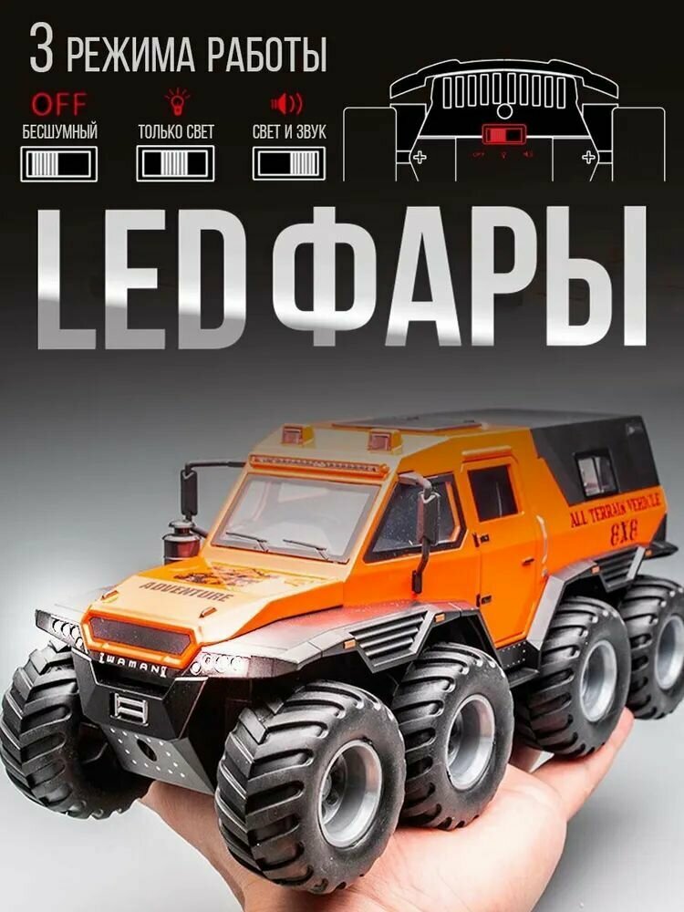 Машинка металлическая Вездеход 8х8 Shaman orange 1:24 длиной 23 см, Коллекционная модель машины для взрослых, Игрушечный автомобиль с звуковыми и световыми эффектами для детей: сравнение цен, характеристики, фото, актуальное наличие и цены.
