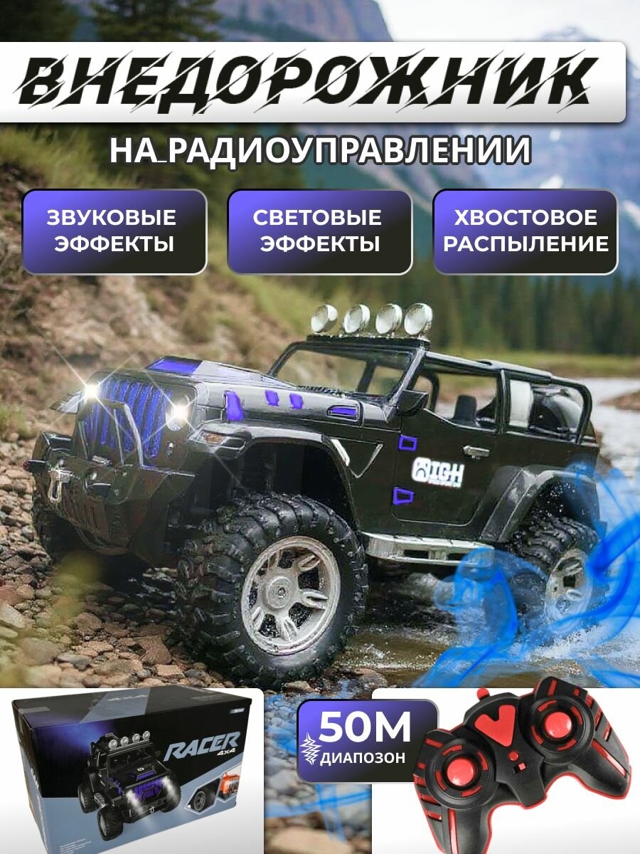Купить Машинка на пульте управления . 9166-9 . Машинки для мальчиков , большая с подсветкой и спреем, черный с доставкой по всей России.