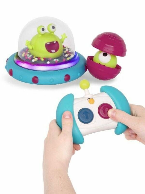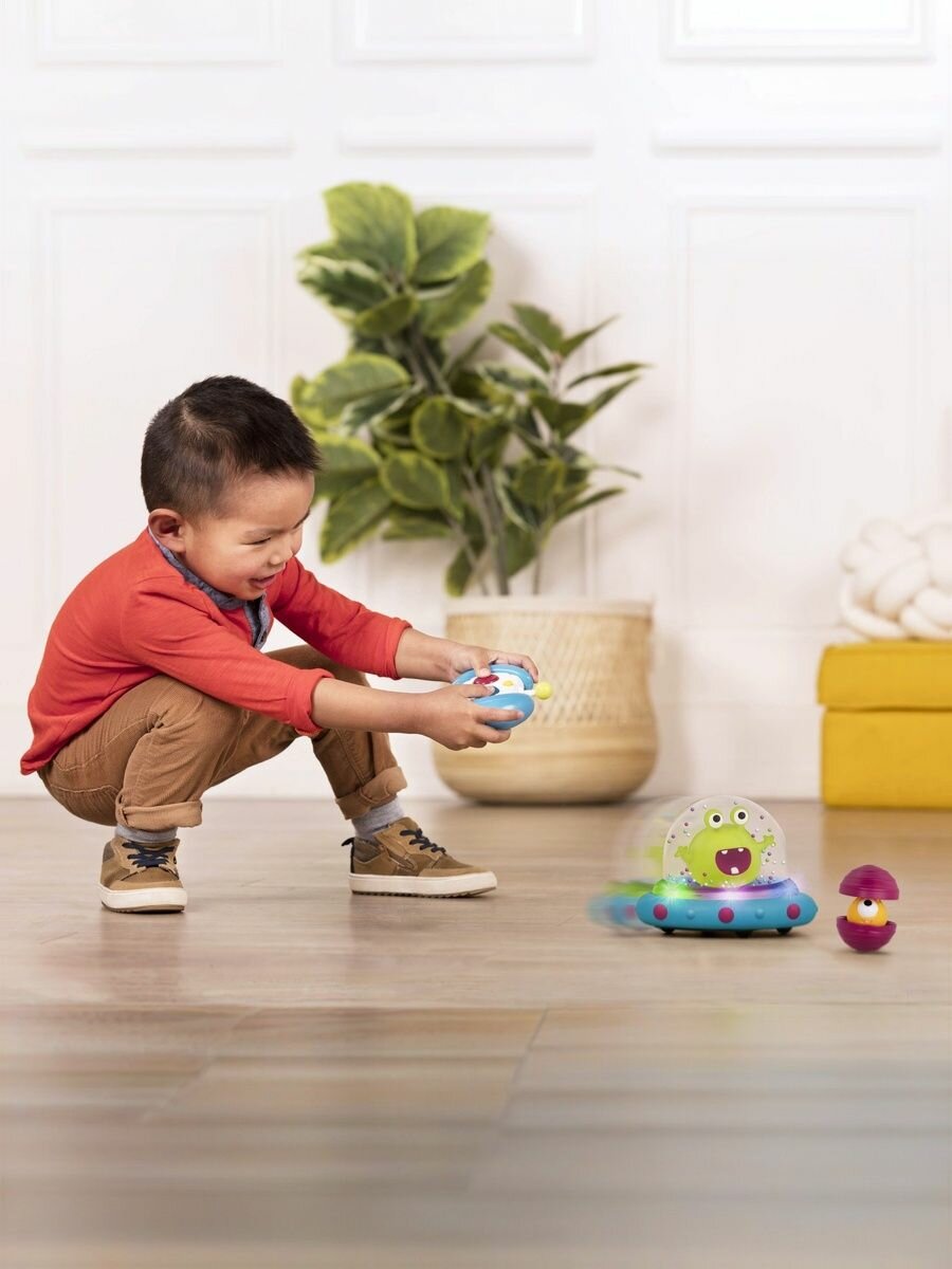 Машинка на пульте НЛО с инопланетянином от Battat - это идеальный подарок для детей от 1 до 5 лет. Игрушка выполнена в виде летающей тарелки с забавным инопланетянином и разноцветными шариками под куполом, которые можно перемещать.