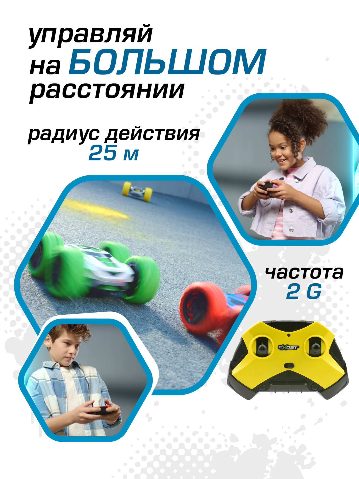Машина бренда EXOST является улучшенной версией 360 Кросс 3 поколения! Бестселлер EXOS в обновленном корпусе и с LED подсветкой фар! У неё огромные колёса, благодаря чему она легко переворачивается. Мощные протекторы обеспечивают отличное сцепление с поверхностью дороги. Машина точно преодолеет все сложные препятствия на своем пути. Но самое интересное: вездеход работает на частоте 2.4G, а это значит, что играть с друзьями вы сможете без перебивания сигналов. Такая игра станет зрелищной и удивит всех окружающих. В процессе игры развивается координация движений, внимание, мелкая моторика рук. Отличный подарок для мальчика на День Рождения, именины, 23 февраля или Новый Год В наборе: 1 радиоуправляемая машина, пульт. Масштаб: 1:18. Радиопередача: 2.4 GHz.