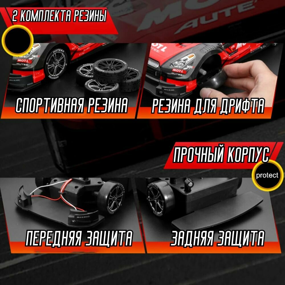 Машинка оснащена мощным двигателем и высококачественной подвеской, что обеспечивает плавное и стабильное движение даже на высоких скоростях. Специальные дрифт-шины позволяют легко входить в повороты и делать крутые виражи. Управление осуществляться с помощью удобного и интуитивно понятного пульта, который работает на дальнем расстоянии, обеспечивая максимальную свободу действий.
