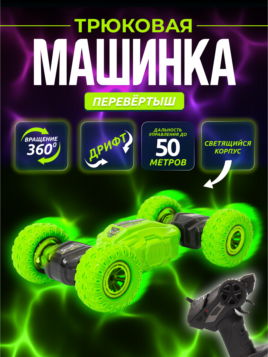 Радиоуправляемая машинка на пульте управления — трюковая машина-перевертыш с 4WD и световыми эффектами