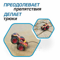 Высокотехнологичный внедорожник имеет огромные колеса с большими рельефными протекторами. Это позволяет машине преодолевать практически любые препятствия и ездить по любым поверхностям, включая воду (не глубже 10см). Внедорожник очень маневренный, быстро разгоняется, может на одном месте совершать круговые обороты на 360, одинаково легко двигается вперед и назад. Максимальная скорость – 8км/час, в воде – 2-3км/час.