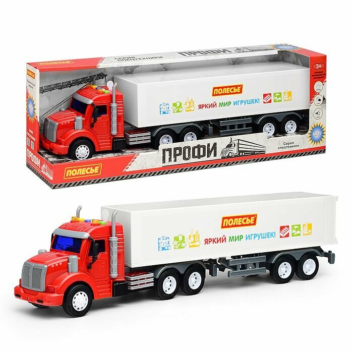 Машинка Полесье «Профи», с полуприцепом инерционный, со светом и звуком, красно-белый, в коробке: сравнение цен, характеристики, фото, актуальное наличие и цены.