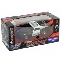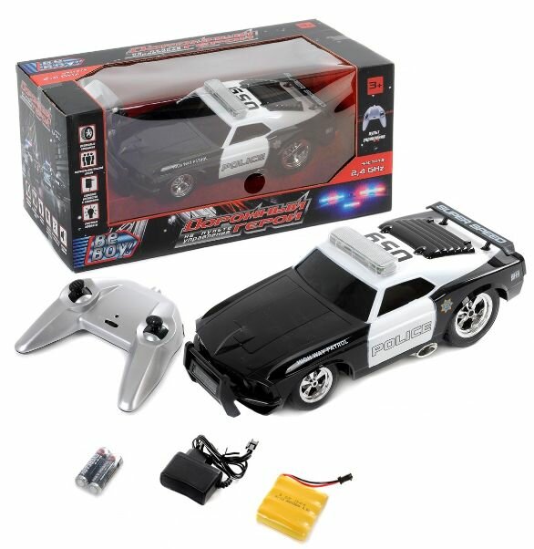 Любителям полицейских блокбастеров и детективов обязательно понравится эта модель. Полиция может быть не только быстрой но и стильной. Радиоуправляемая машинка на настоящих резиновых покрышках, с двухцветным брутальным корпусом и яркой аэрографией, спортивными спойлерами и обвесами, мощным воздухозаборником на капоте обязательно задержит любого нарушителя. А свет фар, мигалок и звук сирены сделает погоню максимально похожей на настоящую. Звуковой ряд у машинки очень богатый – 4 варианта звука сирены. Есть и режим без звука, когда работают одни мигалки. Машинка управляется с пульта. Особенность модели – пульт отлично работает и на дальнем расстоянии, а многопользовательский режим позволит владельцу играть вблизи других радиоуправляемых моделей без помех. В комплекте есть зарядное устройство и аккумуляторы, так что играть можно так долго, как только захочется