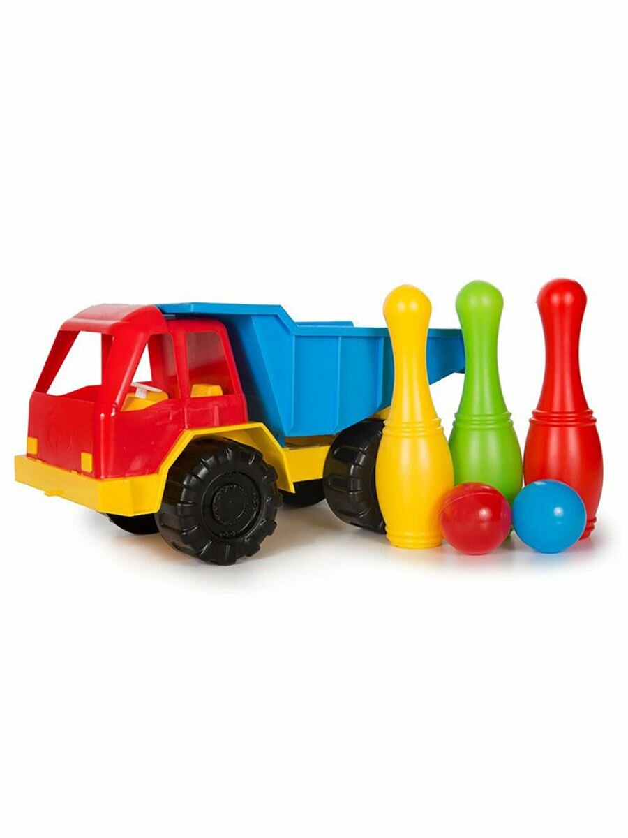 Купить Машинка самосвал в наборе с кеглями красный/синий с доставкой по всей России. Машинка самосвал в наборе с кеглями красный/синий: сравнение цен, характеристики, фото, актуальное наличие и цены.