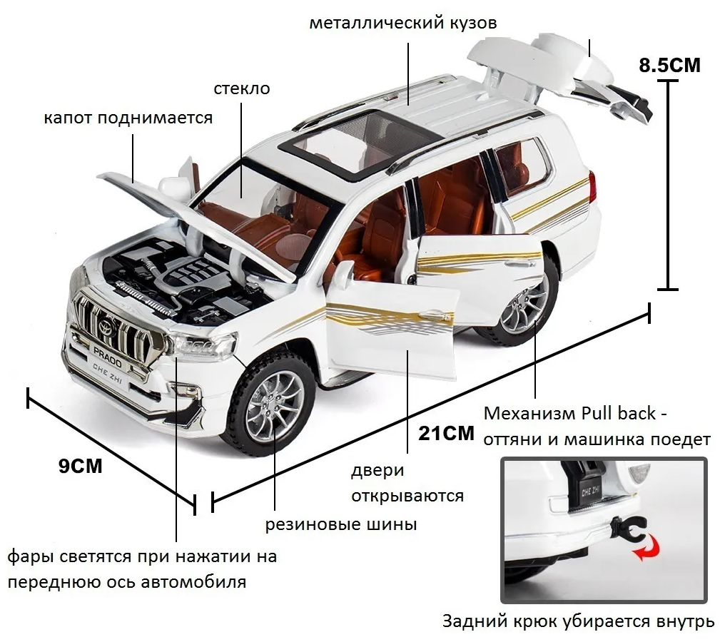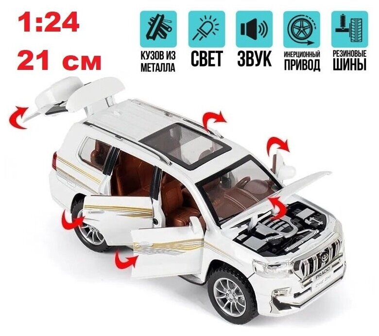 Машинка Тойота Лэнд Крузер Прадо Toyota Land Cruiser Prado 21 см (1:24), открываются двери, капот и багажник, белая: сравнение цен, характеристики, фото, актуальное наличие и цены.