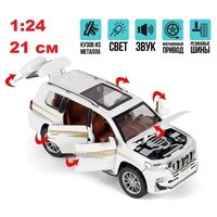 Купить Машинка Тойота Лэнд Крузер Прадо Toyota Land Cruiser Prado 21 см (1:24), открываются двери, капот и багажник, белая с доставкой по всей России.