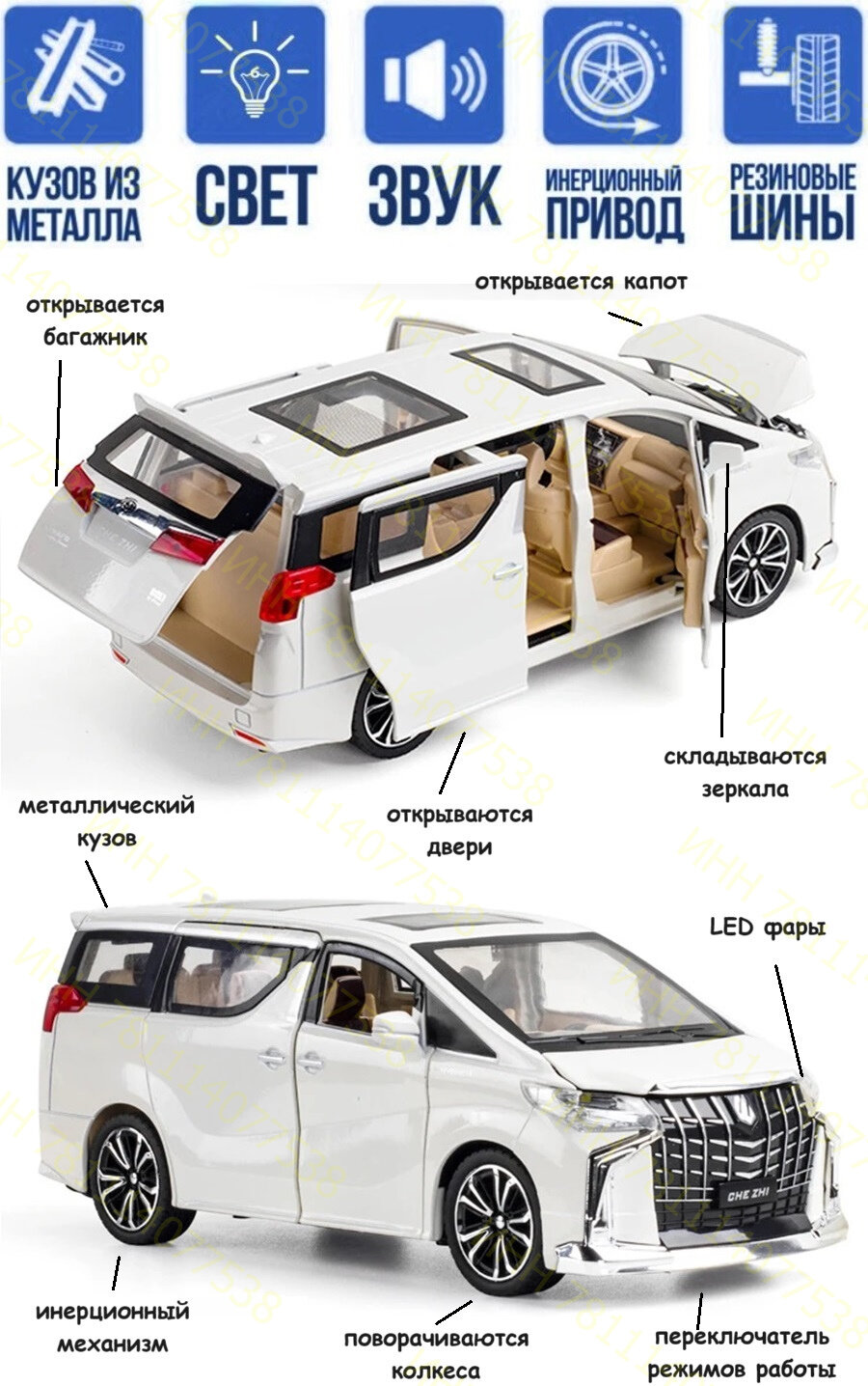 Машинка Toyota Alphard металлическая инерционная 21 см открыв. двери, капот, багажник, поворачиваются колеса, склад. зеркала, свет и звук, белый: сравнение цен, характеристики, фото, актуальное наличие и цены.