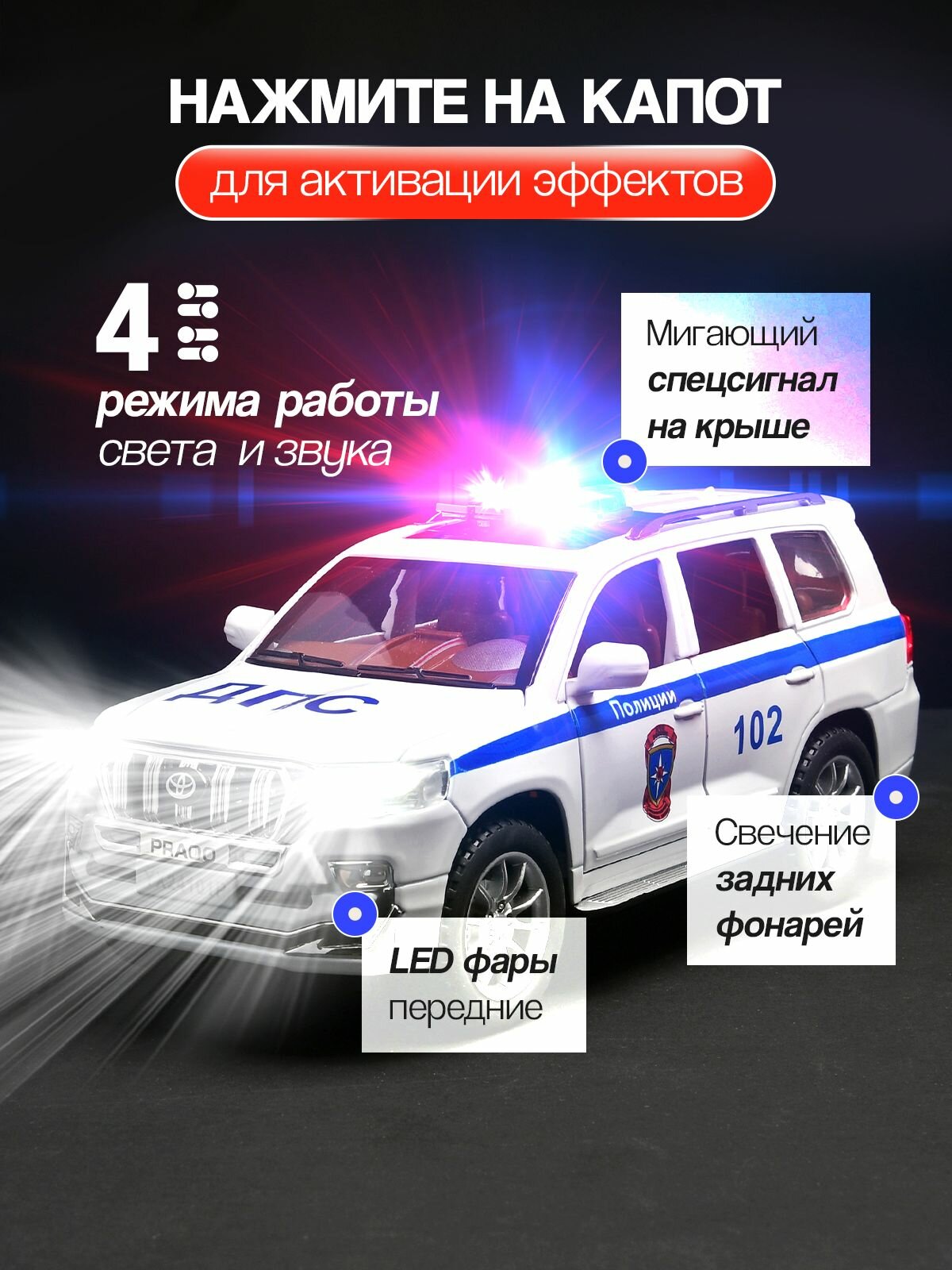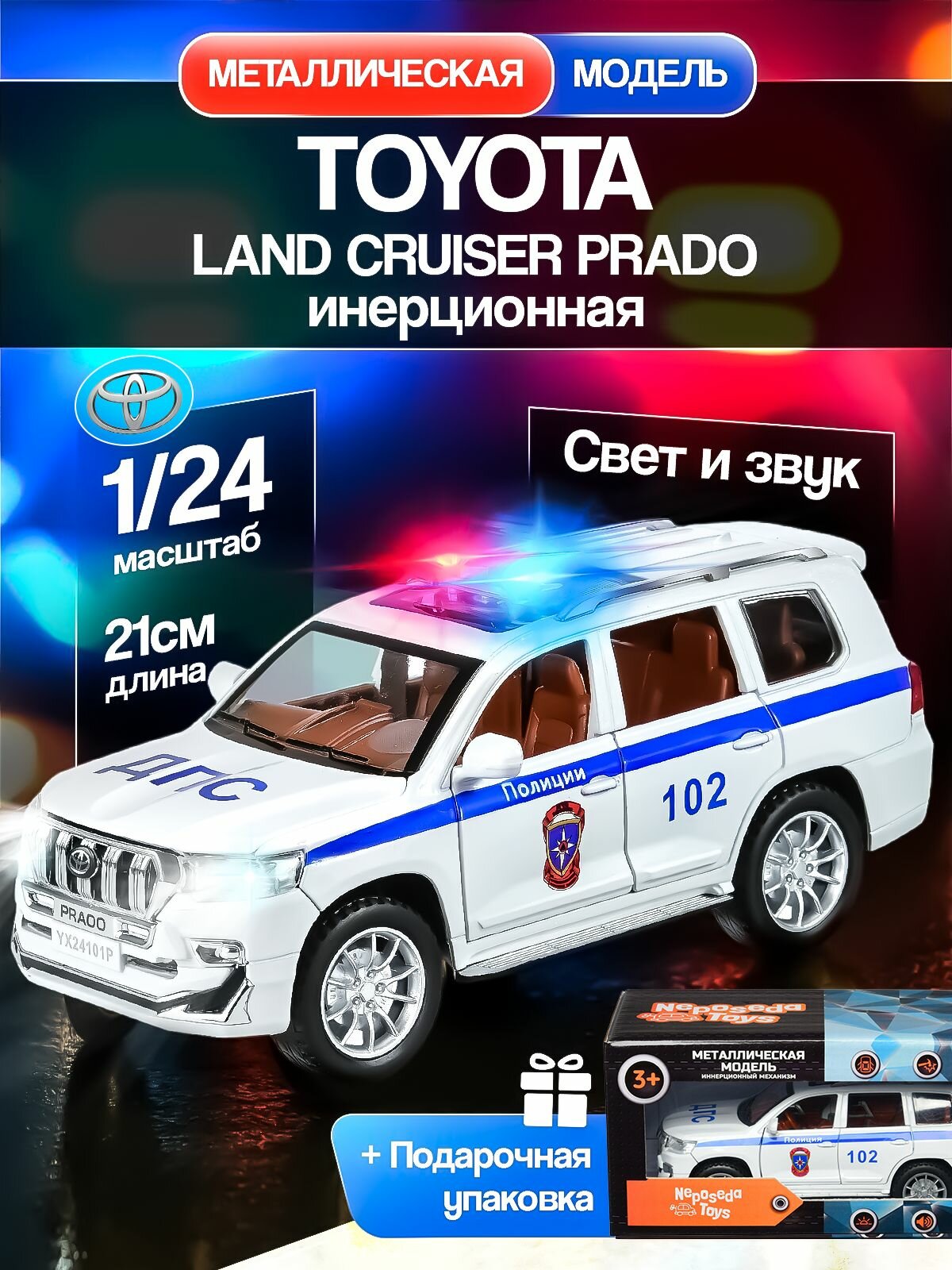 Машинка металлическая Тойота Ленд Крузер Прадо Полицейская ДПС 1:24 21см, игрушка инерционная Toyota Land Cruiser Prado / в подарочной коробке: сравнение цен, характеристики, фото, актуальное наличие и цены.
