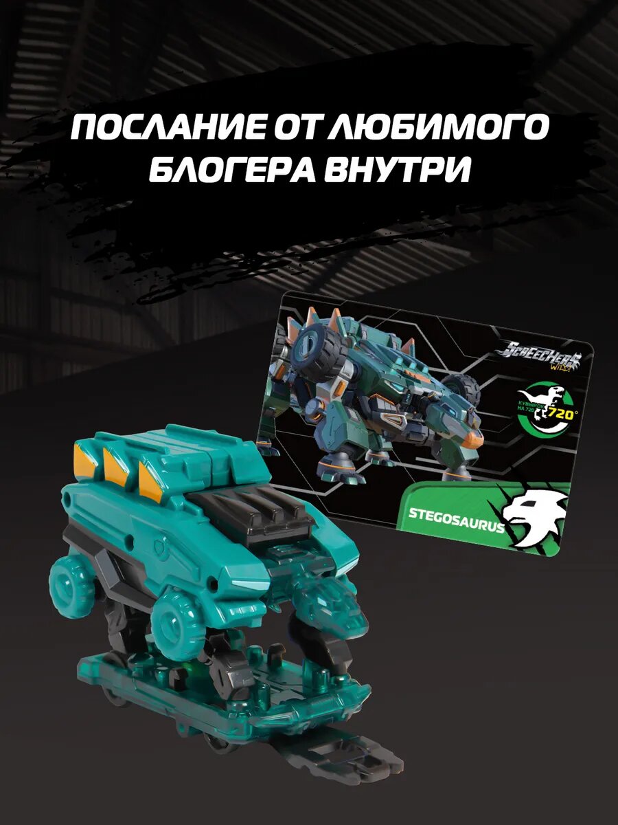 Дикие Скричеры врываются в мир Динозавров! Особая дикая тематическая линейка – Диноботы. Скричер Level 720 разгоняется и делает стремительный кувырок на 720°, самостоятельно трансформируясь прямо в воздухе! Двойное сальто на 720° - рекордная скорость и высота! Обратно в машинку игрушка собирается вручную. Несколько движений - и она готова к новому кувырку. Устраивать самые быстрые баттлы можно где угодно, теперь тебе не нужен скричер-диск для трансформации! Машинка-трансформер Стегозавр - стегозавр с шипами на хвосте и костяными пластинами на спине. Характер – сила, энергию черпает из земной коры. В набор входит машинка-трансформер (7х9х5 см), коллекционная карточка. Игрушка упакована в блистер (16х6х20 см). Машинка-трансформер выполнена из высококачественного материала, товар сертифицирован. Эксклюзивный дистрибьютор бренда "Дикие Скричеры" на территории РФ - компания "РОСМЭН".