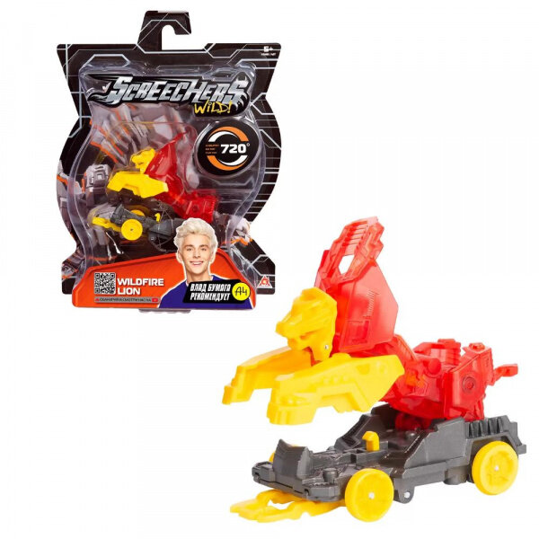 Впервые скричер Level 720 разгоняется и делает стремительный кувырок не на 360°, а на 720°, самостоятельно трансформируясь прямо в воздухе! Двойное сальто на 720° - рекордная скорость и высота! Обратно в машинку игрушка собирается вручную. Несколько движений - и она готова к новому кувырку. Устраивать самые быстрые баттлы можно где угодно, теперь тебе не нужен скричер-диск для трансформации! Машинка-трансформер Вайлдфаер Лайн бренда "Дикие Скричеры" превращается в саблезубого льва, переворачиваясь в воздухе! Устрой баттл – стань крутым скричером! В набор входит машинка-трансформер (после трансформации: 8х7х4 см), коллекционная карточка. Игрушка упакована в блистер (19,5х5,5х15,5 см). Машинка-трансформер выполнена из высококачественного материала, товар сертифицирован. Эксклюзивный дистрибьютор бренда "Дикие Скричеры" на территории РФ - компания "РОСМЭН".