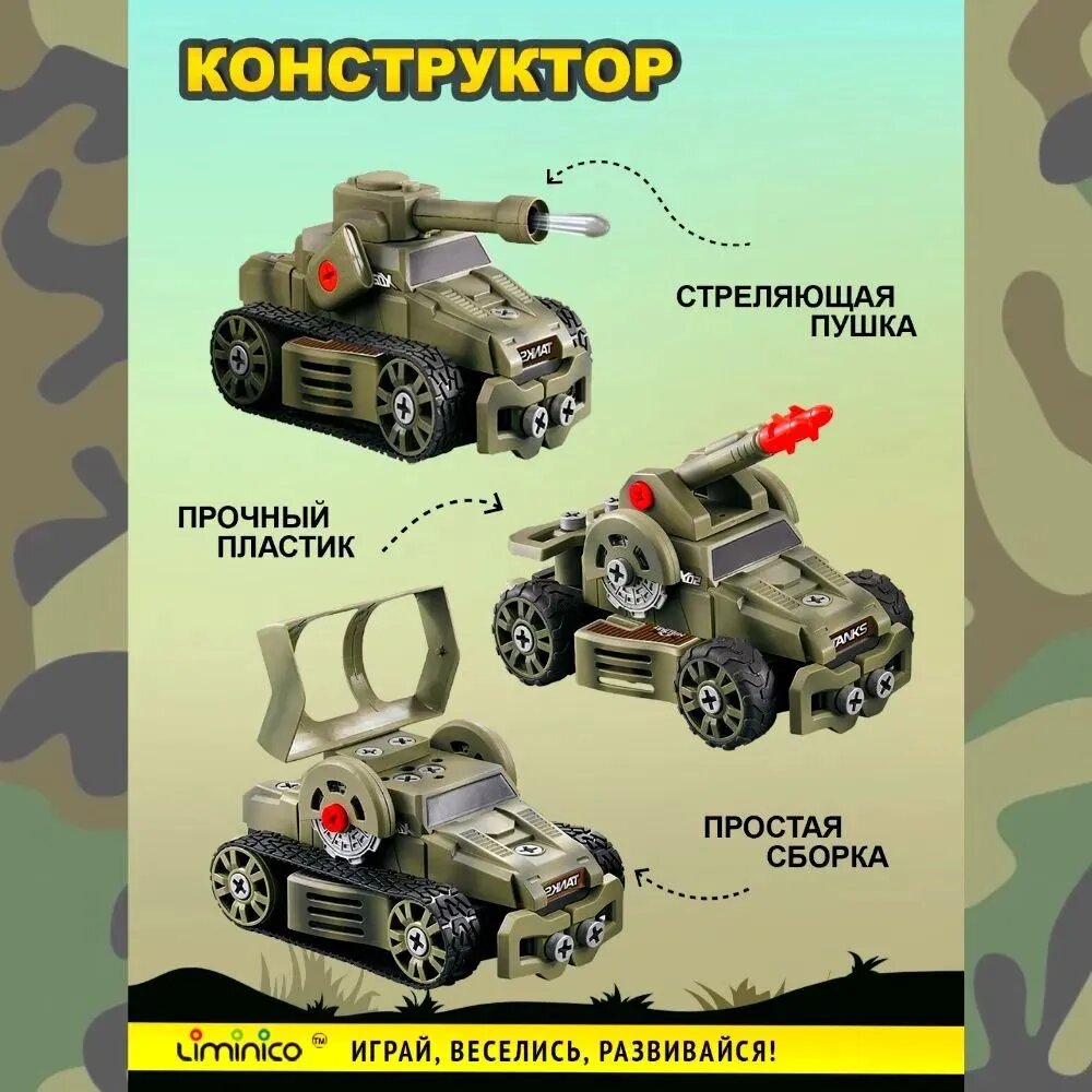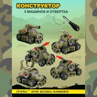 Перед вами уникальный набор-транформер Liminico Военная техника, конструктор с отверткой 5 в 1, игровой набор для мальчиков, позволяющий собрать единицу боевой военной техники.