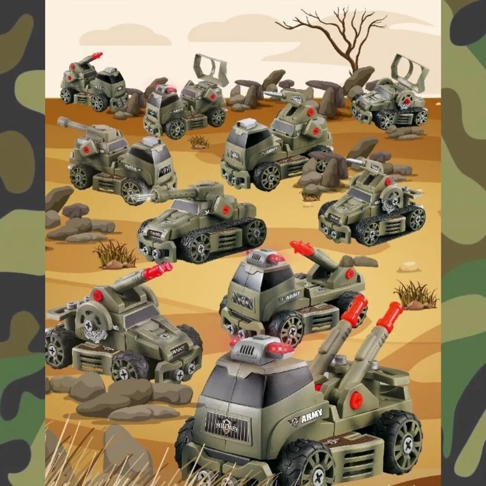 Перед вами уникальный набор-транформер Liminico Военная техника, конструктор с отверткой 10 в 1, игровой набор для мальчиков, позволяющий собрать единицу боевой военной техники.