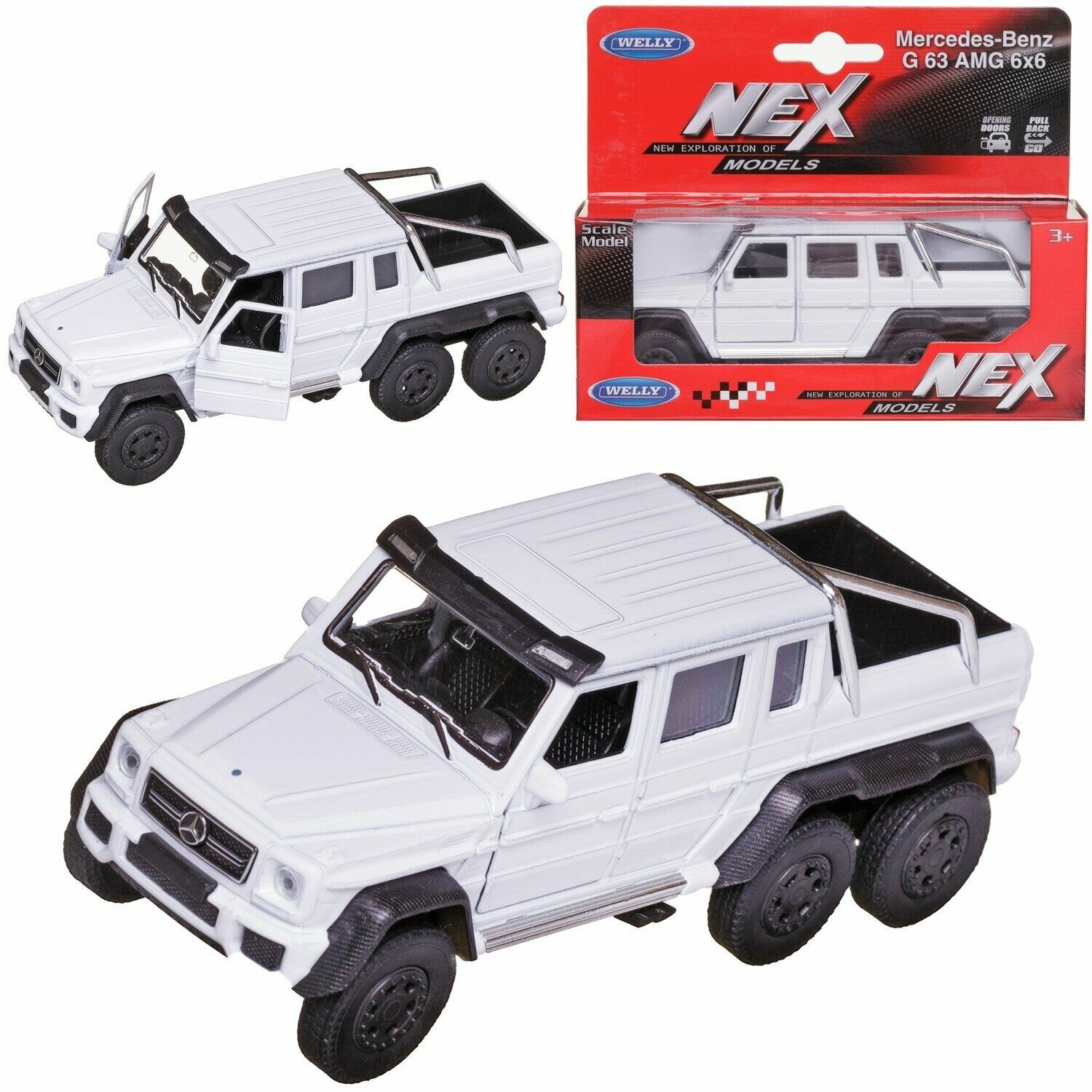Машинка WELLY 1:38 Mercedeces-Benz G63 AMG 6X6, пружинный механизм(белый): сравнение цен, характеристики, фото, актуальное наличие и цены.