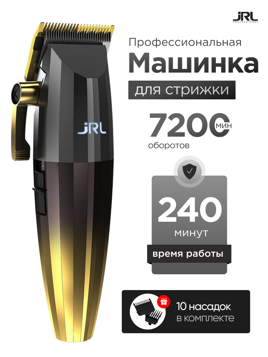 Машинка для волос JRL FF 2020C Gold — уникальный триммер для отечественного рынка. Он комплектуется 10 насадками, адаптером, отверткой, инструментом для регулировки положения лезвия, подставкой, протектором. Для удобного ухода за инструментом в наборе также предусмотрена щетка.