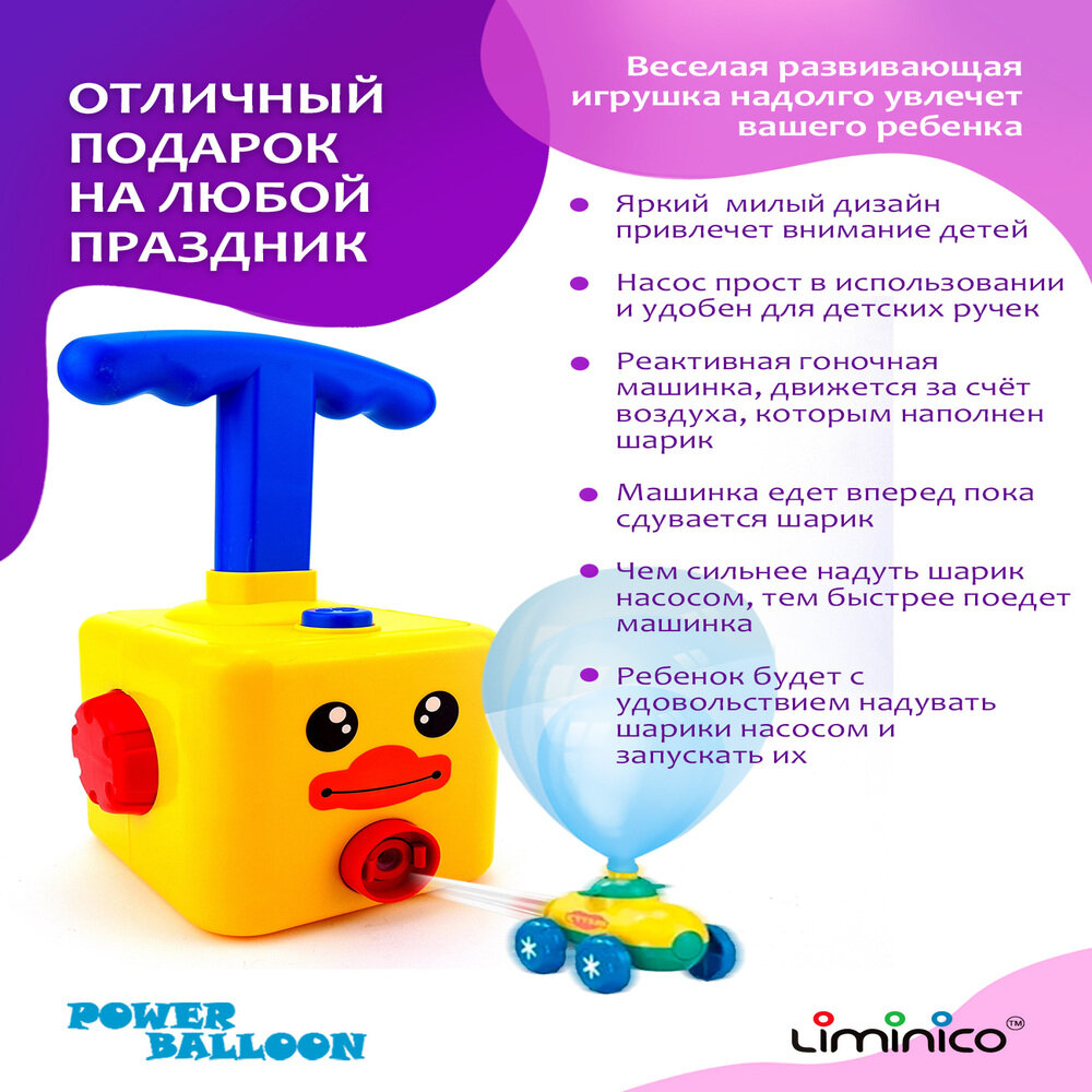 | Подробная комплектация | Насос - 1 шт., Машинка реактивная гоночная - 2 шт., космонавт - 1 шт., ракета - 1 шт., переходники для накачивания воздушных шариков - 2 шт., набор шариков -10 шт. + 10 шт., ПОДАРОК |