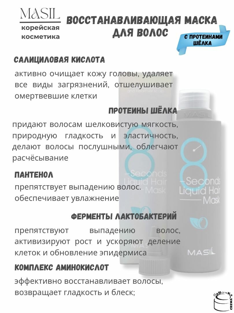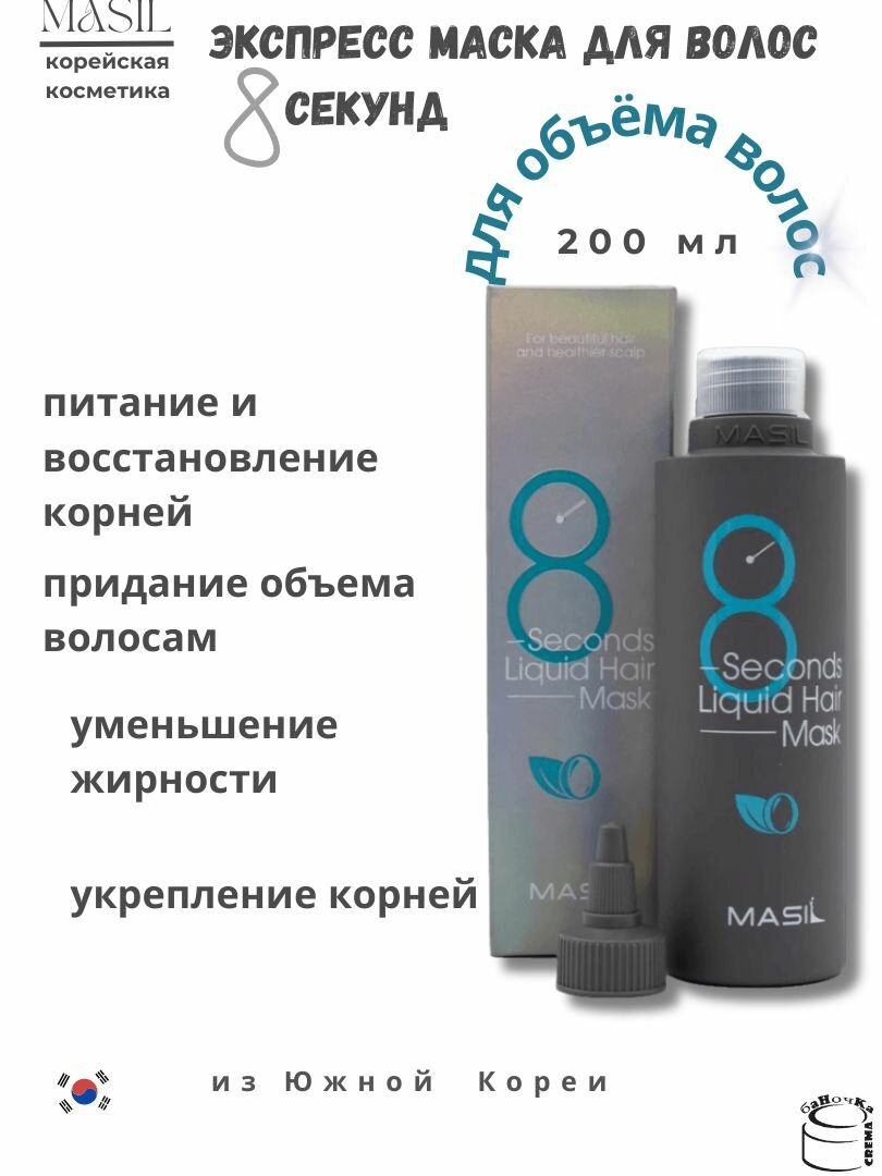 Masil Восстанавливающая маска-экспресс для придания объема волос 8 секунд — 8 Seconds liquid hair mask, 200 мл: сравнение цен, характеристики, фото, актуальное наличие и цены.