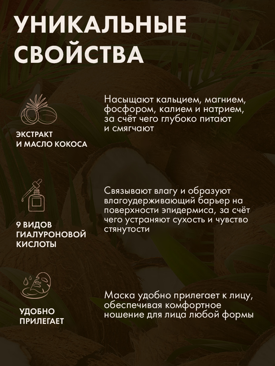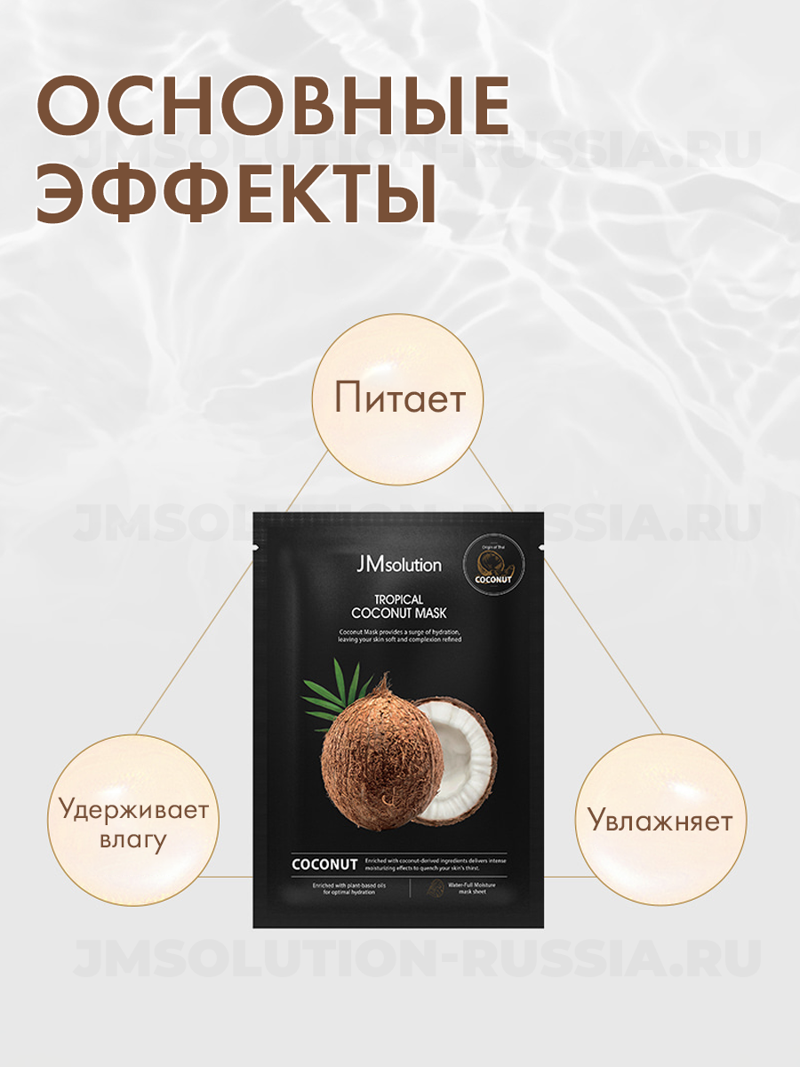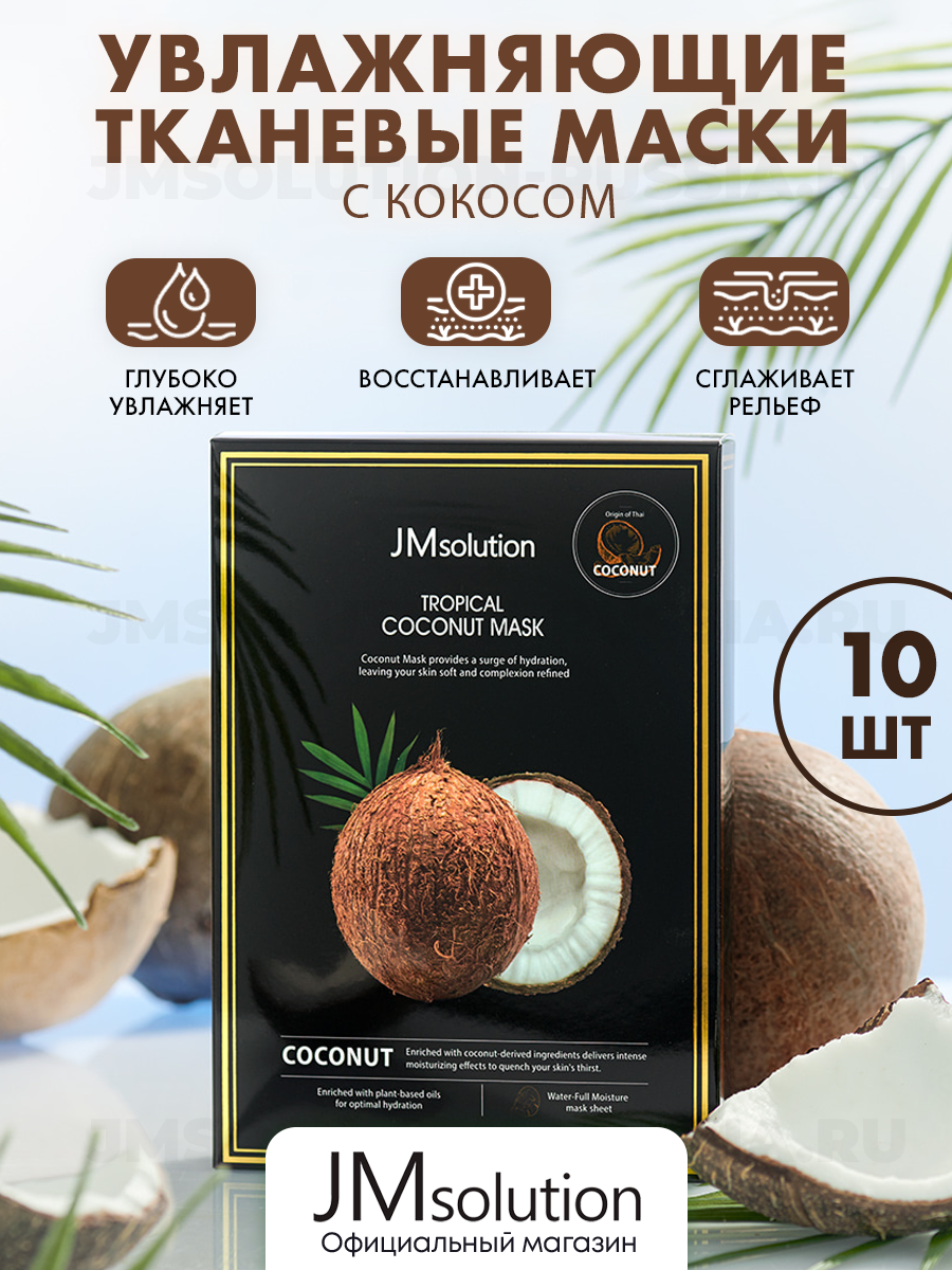 Маска для лица с гиалуроновой кислотой JM solution Tropical Coconut Mask, Корея 10 штук: сравнение цен, характеристики, фото, актуальное наличие и цены.