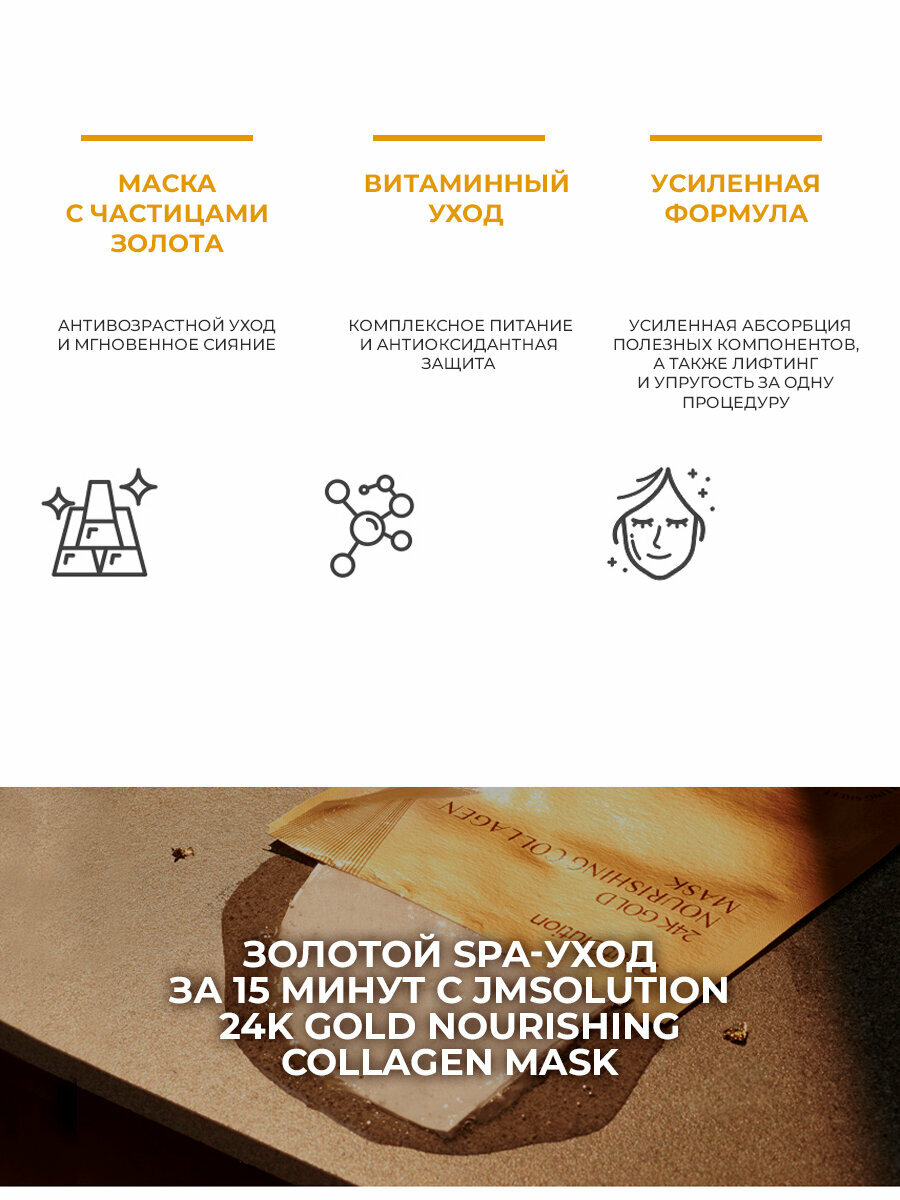Купить Маска для лица с коллагеном и золотом JMSOLUTION 24K GOLD NOURISHING COLLAGEN MASK, Корея 5 штук с доставкой по всей России.