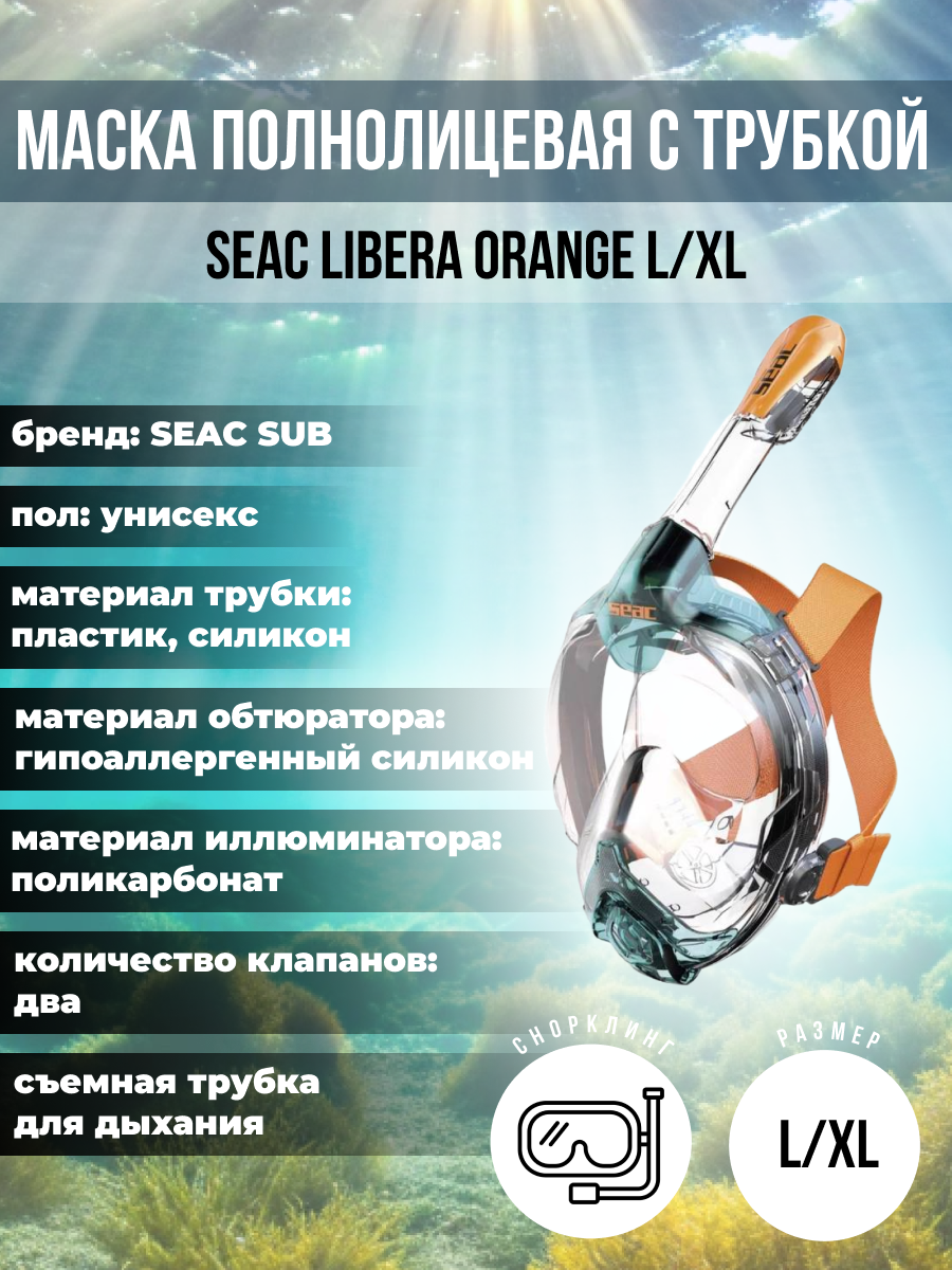 Маска для плавания полнолицевая SEAC SUB LIBERA AQUAMARINE/ORANGE, р-р L/XL: сравнение цен, характеристики, фото, актуальное наличие и цены.