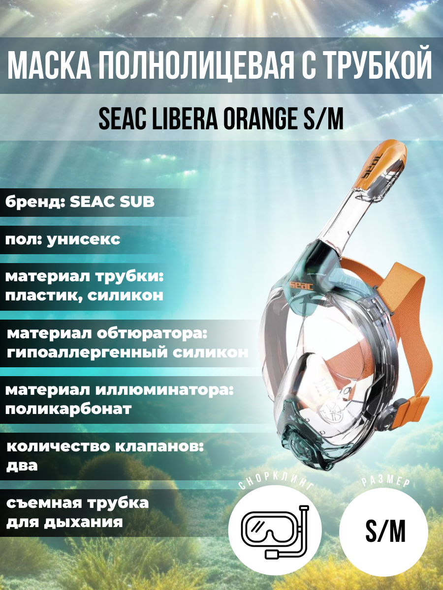 Маска для плавания полнолицевая SEAC SUB LIBERA AQUAMARINE/ORANGE, р-р S/M: сравнение цен, характеристики, фото, актуальное наличие и цены.