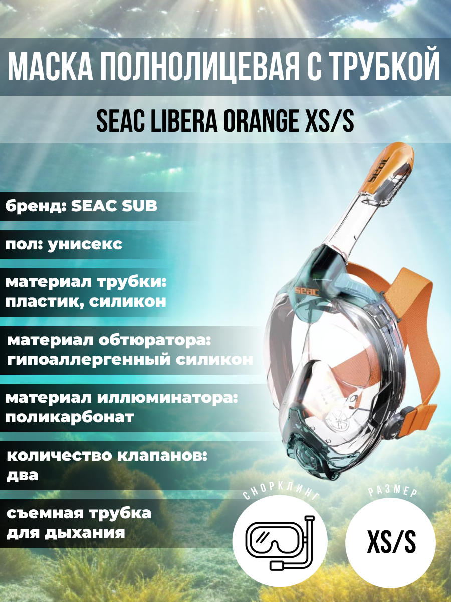 Предупреждение: Маска SEAC SUB LIBERA не предназначена для прыжков воду, иллюминатор может треснуть и повредить лицо. Так же маску нельзя использовать на глубине больше 1.5 метров.