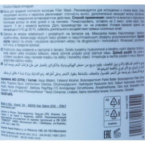 | Активный ингредиент | витамин E, гиалуроновая кислота, глицерин, кератин, лимонная кислота, молочная кислота, протеины, цетримониум хлорид |