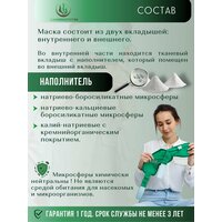 Маска состоит из двух вкладышей: внутреннего и внешнего. Во внутренней части находится тканевый вкладыш с наполнителем, который помещен во внешний вкладыш.