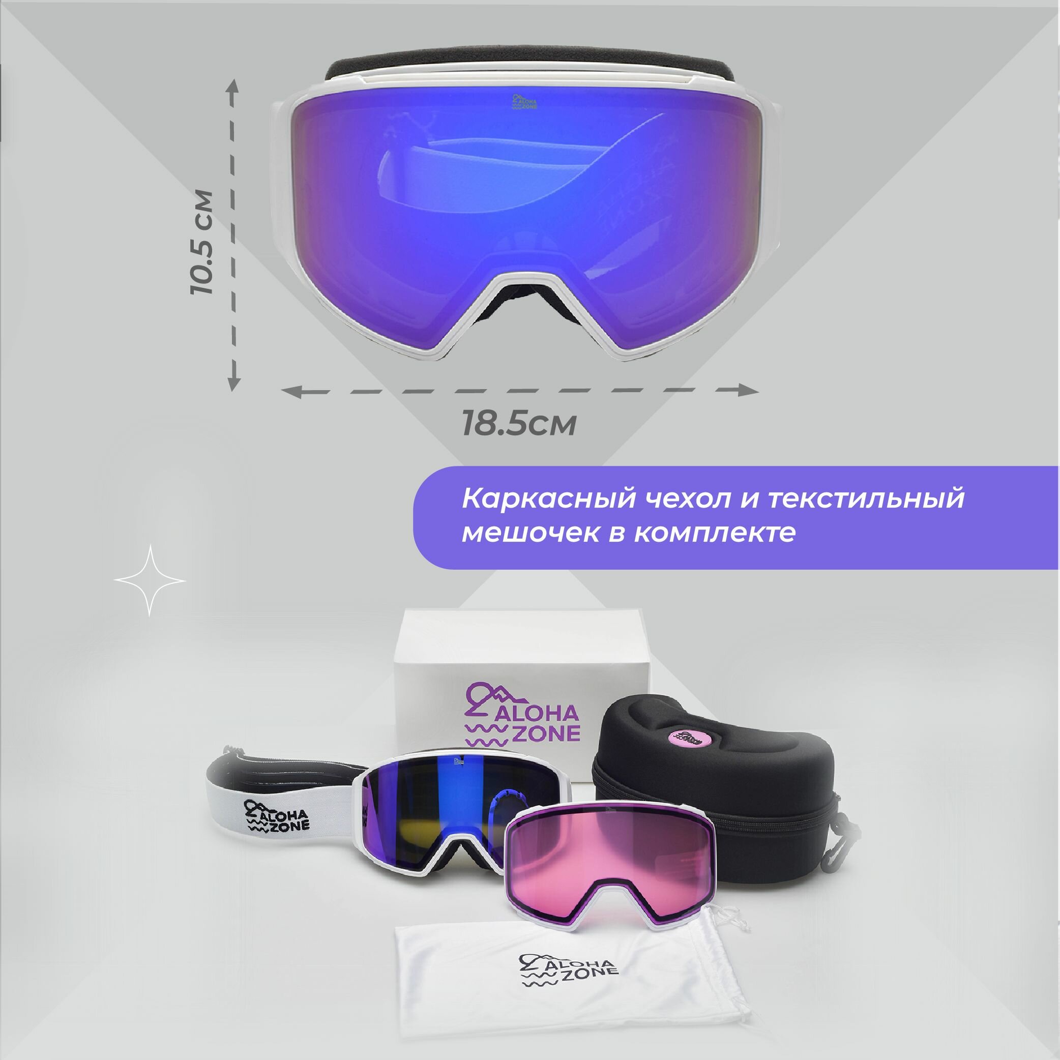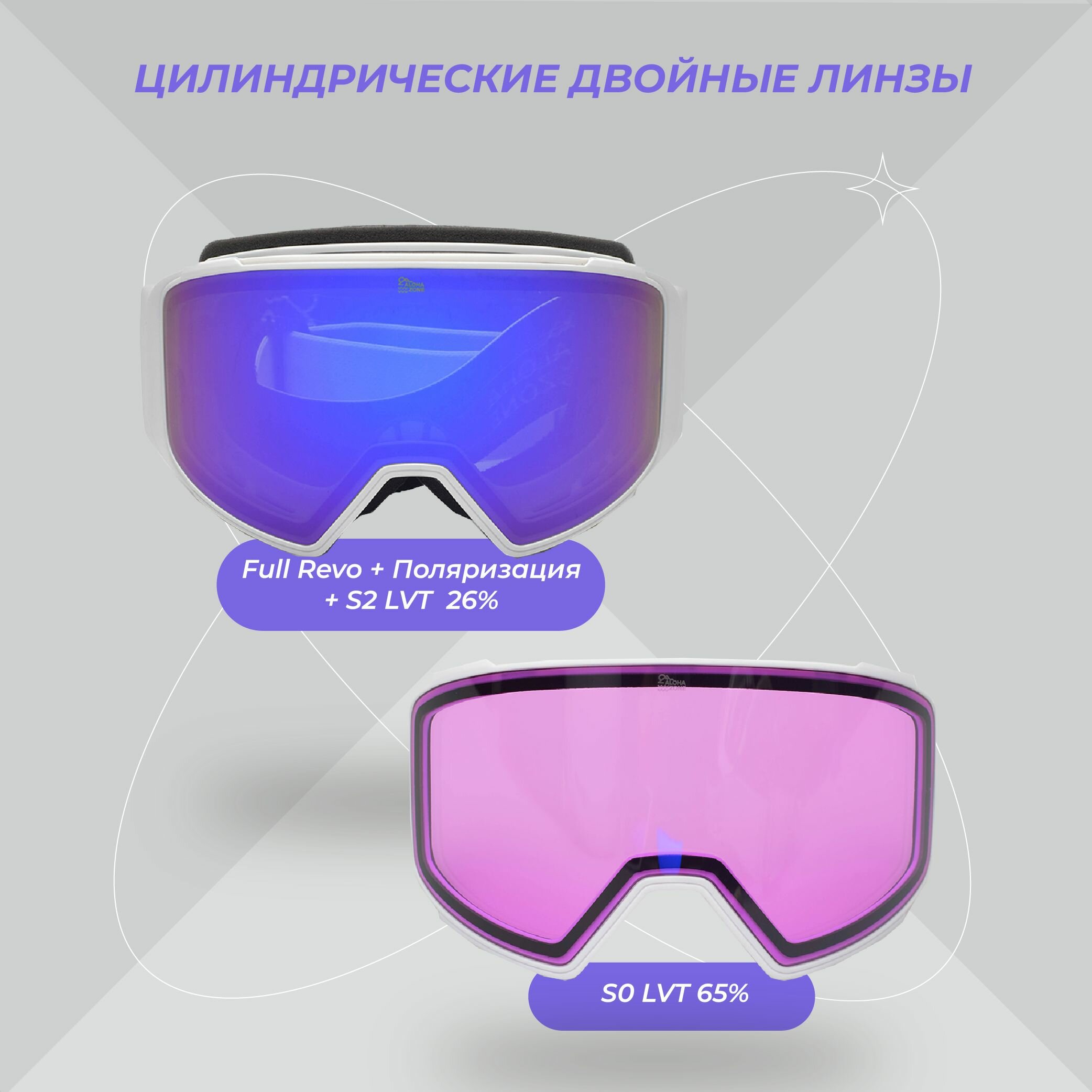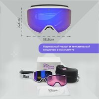 Горнолыжная маска сноубордическая строгой формы, две двойные сменные линзы в комплекте с защитным боксом и чехлом. Основная линза (Full Revo + Поляризация + S2 LVT 26%), вторая линза для вечернего катания (S0LVT65%) Дизайн спортивных очков, широкий обзор, а кроме того, идеальная посадка и идеальная совместимость со шлемами. Маски для сноуборда и горных лыж. 2 двойные линзы на магнитах в комплекте: для ясной , пасмурной погоды и искусственного освещения. Технологии Full Revo и Polarization, антибликовое покрытие, устойчивое к царапинам. Двойной поролоновый слой и слой из мягкой ткани в местах прилегания к лицу. Удобная регулировка размера. Вентиляционные отверстия в маске также препятствуют запотеванию дополняя функционал Anti-Fog . Широкий стреп 4,5 см с противоскользящими силиконовыми вставками