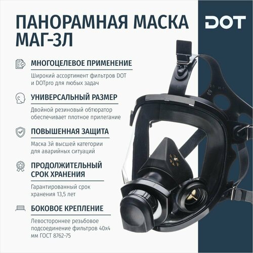 Панорамная полнолицевая маска Маска МАГ-3Л 3 категории с одним боковым резьбовым узлом для присоединения фильтров, расположенным с левой стороны.