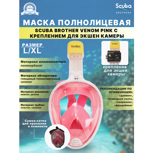 Маска полнолицевая SCUBA BROTHERS VENOM, это полнолицевая маска с двумя клапанами, спроектированная специально для любителей пляжного отдыха и снорлинга. Маска SCUBA BROTHERS VENOM обеспечивает отличный панорамный обзор. За счет сферической формы и большого объема маска обеспечивает широкий обзор до 180 градусов. Линза иллюминатора изготовлена из поликарбоната, который считается одним их самых крепких и безопасных материалов.