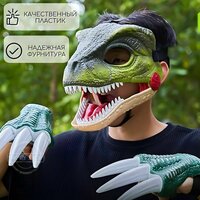 Купить Маска Раптор с подвижной челюстью со звуковыми эффектами / Карнавальная маска пластиковая Динозавр с доставкой по всей России.