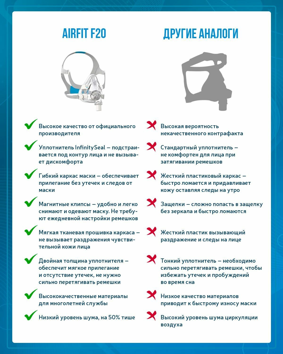 Рото-носовая маска AirFit F20 - надежный выбор для пациентов, которым необходима эффективная СИПАП-терапия и комфорт.