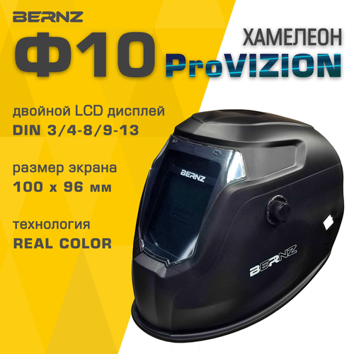 Маска сварщика BERNZ Ф10 ProVISION чёрная, Хамелеон 103х90 мм, DIN 3/4-8/9-13, внешняя регулировка в коробке: сравнение цен, характеристики, фото, актуальное наличие и цены.