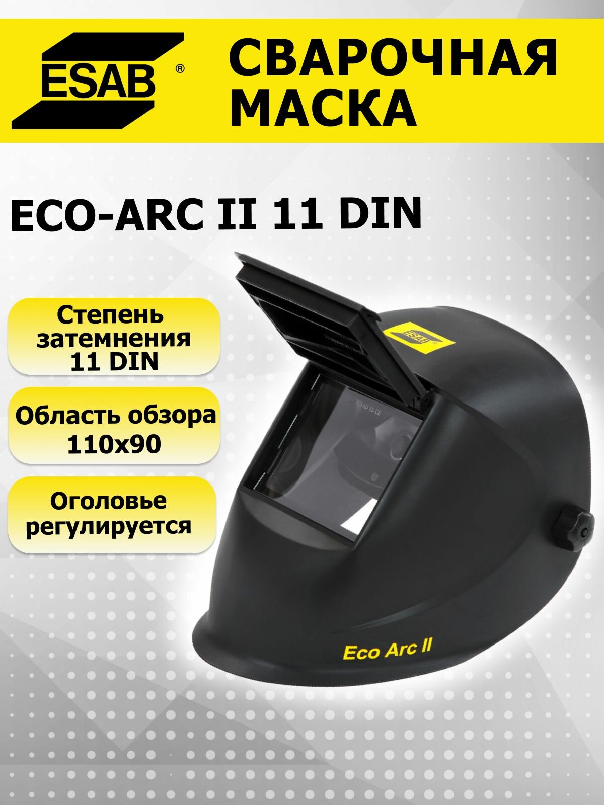 Купить Маска сварщика ECO-ARC II, откидной светофильтр размер 90*110 (11DIN) ESAB с доставкой по всей России.