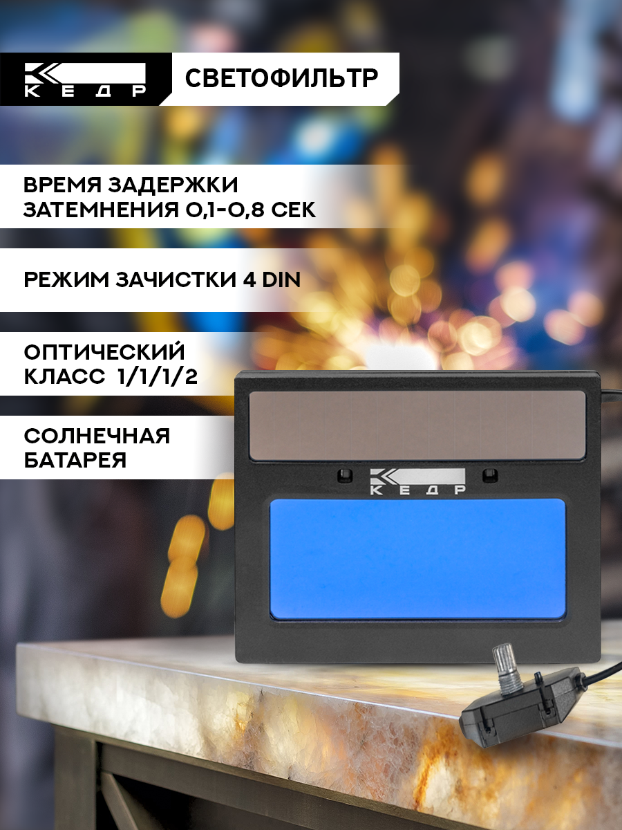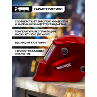 Маска сварщика хамелеон Кедр "К-102 Prime" - это высококачественный продукт, который предназначен для защиты глаз и лица сварщика от вредных ультрафиолетовых и инфракрасных лучей при выполнении сварочных работ. Она имеет эргономичную форму, удобный наголовник и механизм регулировки под любой размер головы. Сварочная маска изготовлена из гибкого ударопрочного материала, что делает ее легкой и удобной в использовании. Сбалансированный центр тяжести обеспечивает комфортное ношение маски в течение длительного времени. Округлая форма с теплоотражающим покрытием создает комфортные условия в подмасочном пространстве, а обтекаемая форма обеспечивает защиту от проникновения сварочных аэрозолей. Смотровое окно размером 89 х 39 мм обеспечивает отличную видимость сварного шва. Маска соответствует стандарту EN 379 и Z 87.1. Светофильтр маски имеет автоматическое затемнение и диапазон затемнения от 9 до 13 Din. Два независимых датчика дуги обеспечивают быстрое и точное срабатывание фильтра. Солнечная батарея и встроенный аккумулятор обеспечивают длительное время работы маски без необходимости замены батареек. Особенности маски: - Автоматическое затемнение - Диапазон затемнения: Din 4/9-13 - Два независимых дуговых сенсора - Солнечная батарея и несъемный встроенный аккумулятор - Смотровое окно 89 x 39 мм - Оптический класс 1 / 1 / 1 / 2 - Диапазон температур эксплуатации от -10 до +60 градусов Цельсия В комплекте с маской идут наружное и внутреннее поликарбонатные защитные стекла, реечный наголовник, автоматический светофильтр, инструкция по эксплуатации. Красный цвет светофильтра маски придает ей современный и стильный вид, что делает её идеальным выбором для профессионального и любительского использования.