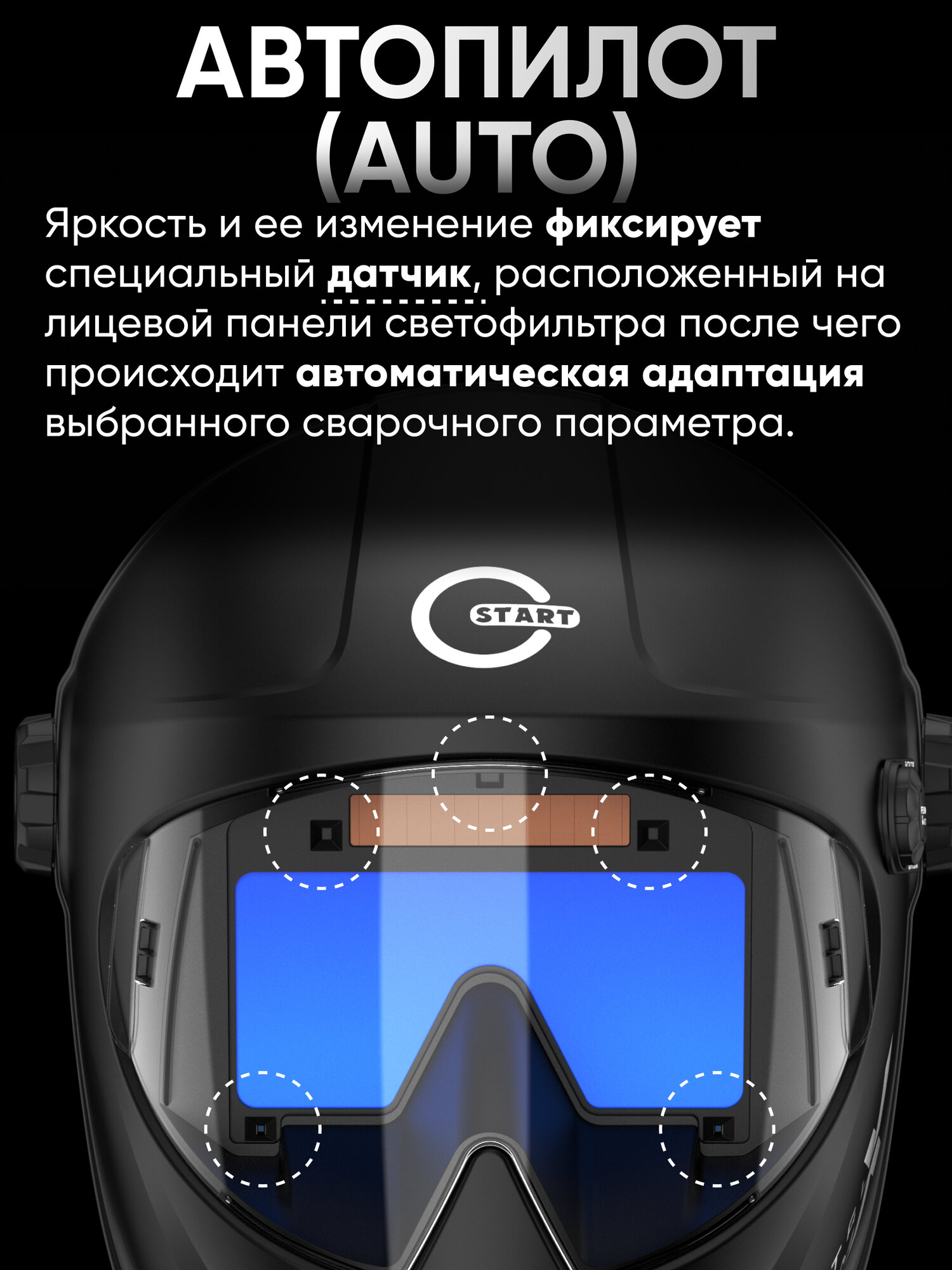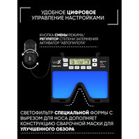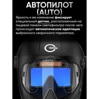 Маска с максимальным набором опций, позволяет лучше контролировать рабочий процесс. Модель оснащена режимом самодиагностики фильтра, функцией “Градиент”, режимами “Автопилот” для автоматического выбора степени затемнения, чувствительности сенсоров и времени задержки. Так же светофильтр оснащен функцией сохранения настроек.