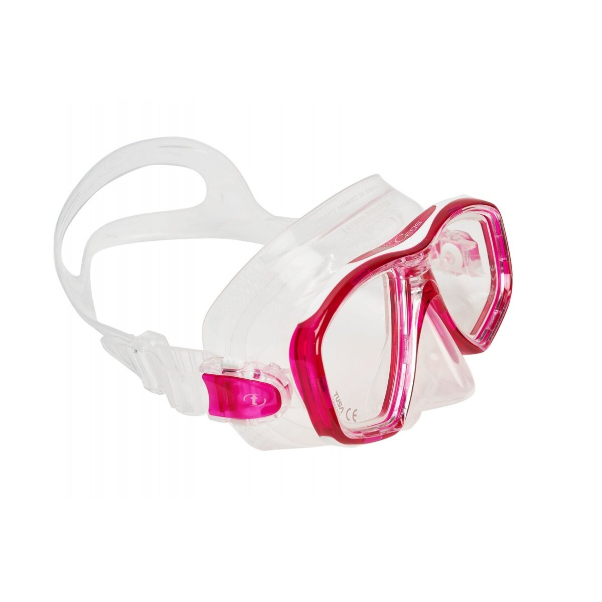 Маска TUSA CEOS, розовая рамка, прозрачный силикон, это двухстекольная низкопрофильная маска с небольшим подмасочным объемом, с возможностью установки диоптрических линз. В маске используется новейшая революционная технология FREEDOM, обеспечивающая комфорт, отличную посадку на лице и превосходный обзор.